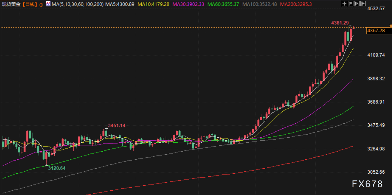 —周二(北京时间10月21日)亚市早盘,现货黄金交投于4362美元/盎司附近,金价周一反弹再度刷新历史高位至4381.29美元/盎司,受助于美国进一步降息的预期和避险需求持续,美参议院第11次表决拨款法案仍未通过,政府“停摆”持续,与此同时,投资者等待即将举行的贸易谈判和本周美国公布的通胀数据;美原油交投于56.92美元/桶附近,油价周一收于5月初以来的最低水平,投资者权衡全球供应过剩的可能性,加上贸易紧张局势加剧对经济放缓和能源需求疲软的担忧。